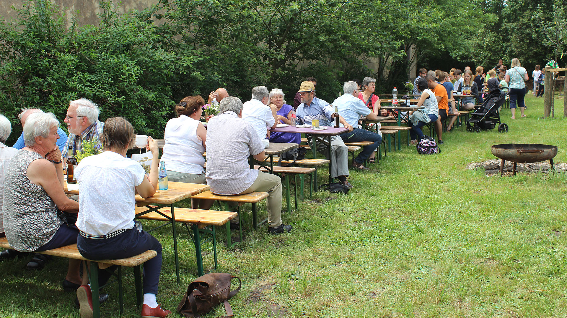 Deutzen (25.06.2019). Am Pfingstmontag fand ein gelungener Umweltgottesdienst, in dem es um die Wahrung der Schöpfung ging, statt. Neben der Frage, wie es weiter für die Deutzener Kirche St. Konrad geht, die im vorigen Jahr im Mittelpunkt des Umweltgottesdienstes stand, nahm man sich dem Thema des Strukturwandels in der Region an. Zwischen Gottesdienst und Podiumsdiskussion gab es, bei Bratwurst und Kuchen, die Gelegenheit sich untereinander auszutauschen. Der Eine-Welt-Laden Connewitz bot einen bunten Mix seiner Produkte an. Die Kinder wuselten fröhlich auf der Wiese rund um die Kirche während „Klärchen“ mit voller Kraft ihre Strahlen auf die Erde sendete.