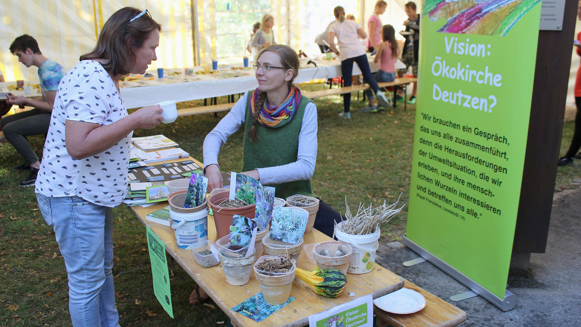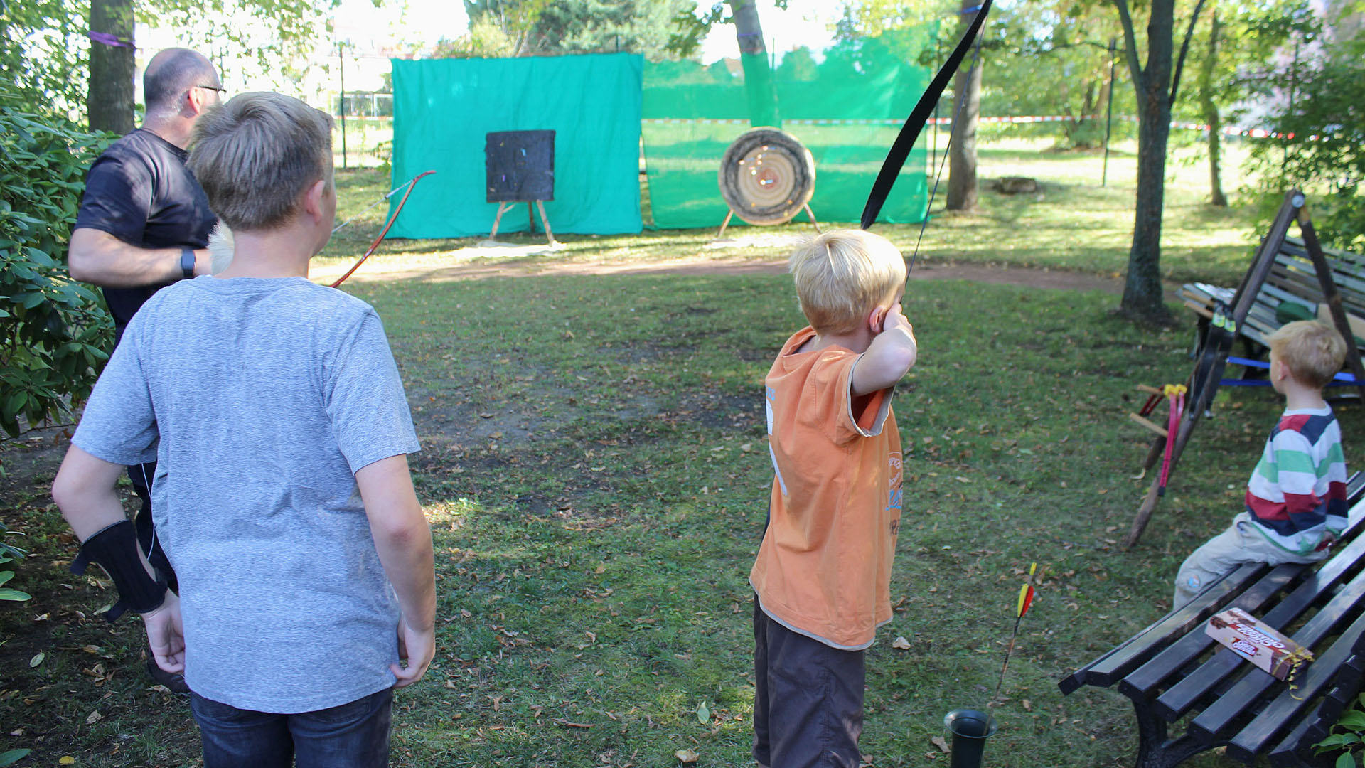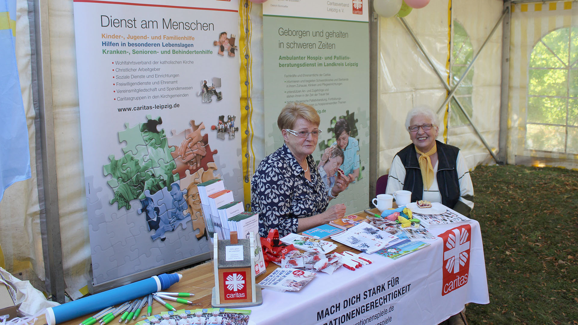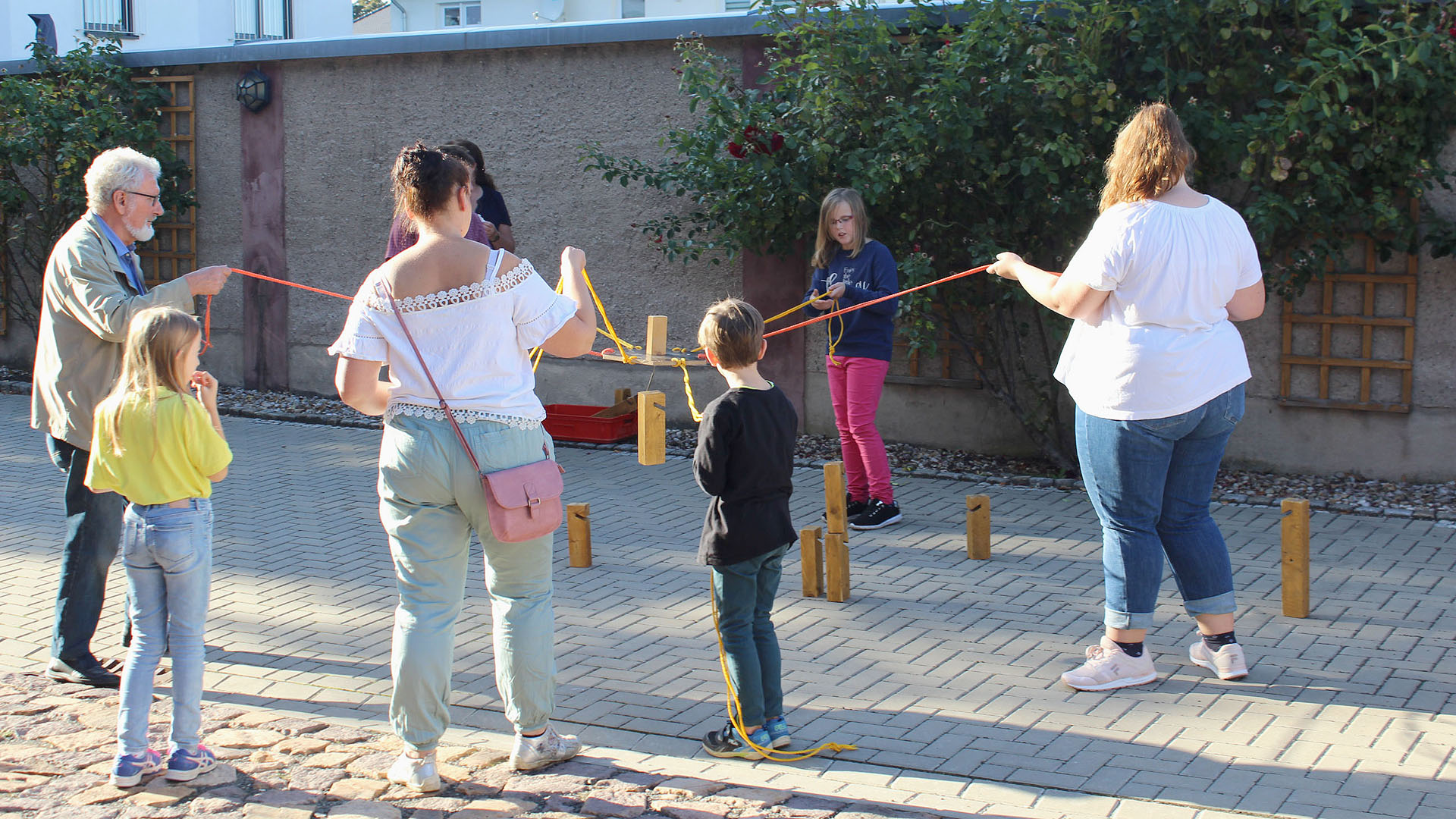 Im großen Festzelt vor der Kirche gab es anschließend ein leckeres, selbstgebackenes Kuchenbuffet. Die Bastelstraße mit Angeboten für Herbstbasteleien und das Kinderschminken waren stark von Kindern und Eltern nachgefragt. Ebenso die Spielstraße mit Bogenschießen, Lebendkicker, Hüpfburg und XXL-Spielen, wie z.B. Büchsen werfen oder Riesen-Jenga. Darüber hinaus präsentierten sich mit der Ökokirche Deutzen, dem Caritasverband Leipzig und dem Bistum Dresden-Meißen auch die kirchlichen Orte mit ihren Angeboten den Besuchern.