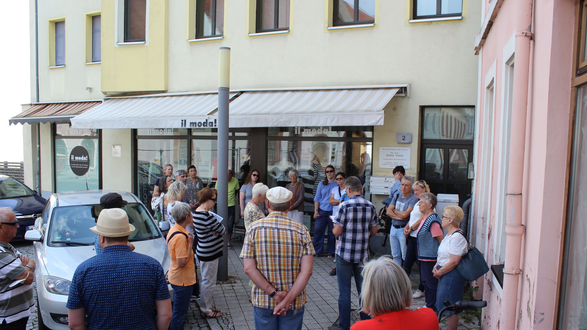 Der Weg führte zu den ehemaligen Wohnhäusern der drei bekanntesten Bornaer Familien jüdischen Glaubens quer durch die Innenstadt. Angefangen bei Familie Rose in der heutigen Roßmarktschen Straße, deren Schicksal am besten erforscht ist – auch mit Unterstützung von überlebenden Angehörigen. Davon zeugen seit 2009 die an ihrem letzten Wohnort verlegten Stolpersteine. Bei den nachfolgenden Familien Singer und Motulsky werden die Informationen zu deren Geschichten bereits spärlicher. Thomas Bergner nannte noch eine Reihe von weiteren Familiennamen, aber zu denen ist bisher so gut wie nichts bekannt. Daher könnte er sich bspw. ein Schulprojekt vorstellen, um diese Familienschicksale näher zu beleuchten und vielleicht mit weiteren Stolpersteinen daran in Borna zu erinnern.