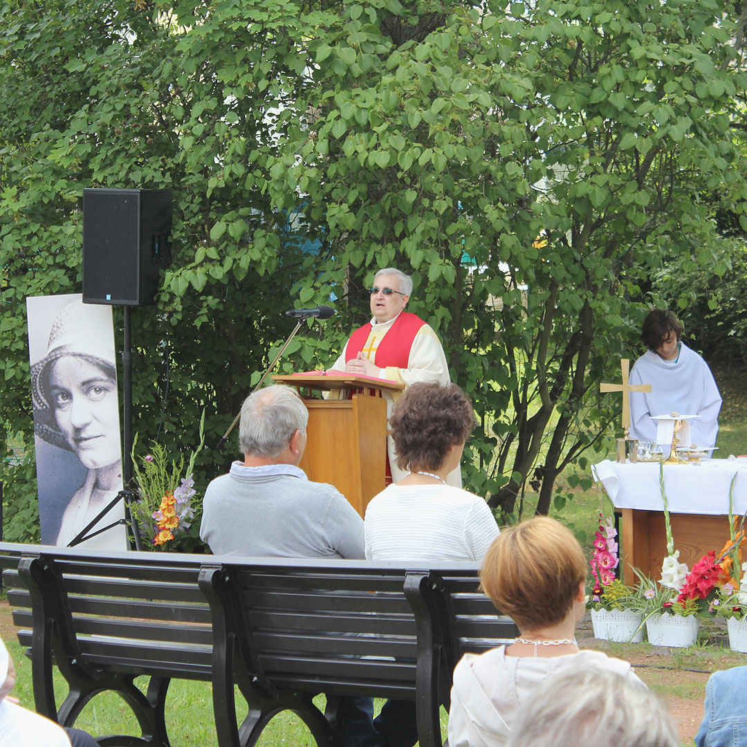 Das Pfarrei-Patronatsfest wurde mit einem Open-Air-Gottesdienst um 10:30 Uhr eröffnet. Kaplan Thomas Wiesner griff in seiner Predigt die jüdischen Wurzeln von Edith Stein und ihre Suche nach der Wahrheit auf, die letztlich zu ihrer Konvertierung führte. Die Mittagspause bot Gelegenheit traditionelle Gerichte aus der Levante-Küche, egal ob Suppe, Brotaufstrich oder Gebäck, zu verkosten.