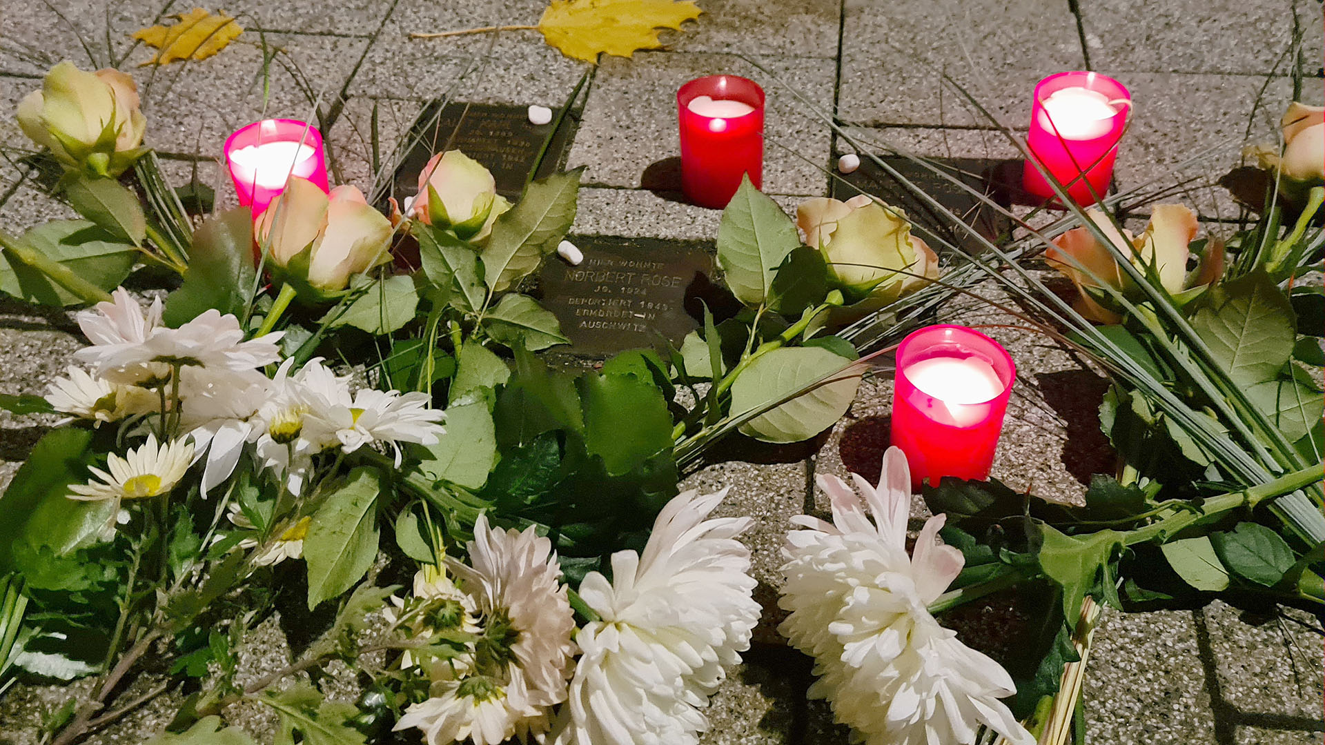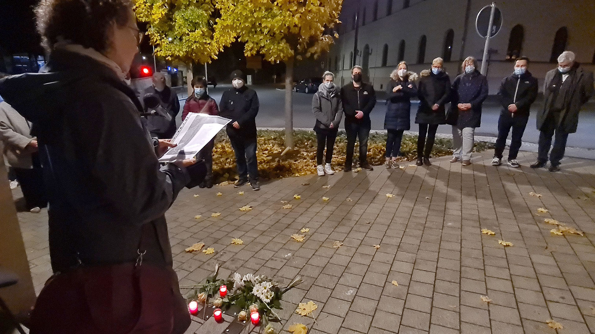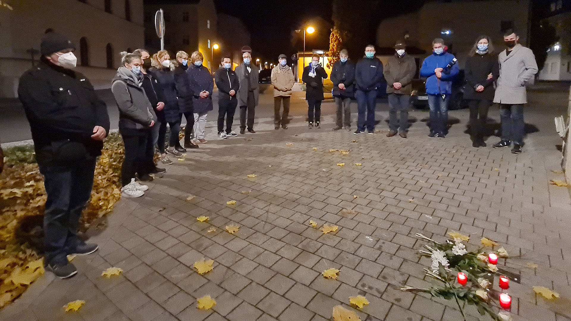 Das Gedenken hat einen Namen und ist immer noch greifbar, wenn man vor dem Haus, welches nun unter anderem die Büros der Kreisgeschäftsstelle der CDU beheimatet, steht und an die Opfer denkt. Der Rahmen der kleinen Gedenkfeier ist jedes Jahr ein feierlicher. Die beiden Stadtbediensteten Inya-Tinko Rabold und Philipp Berger lasen einen Text, der von einem Gespräch zwischen Großvater und Enkel rund um das Geschehen des 9. November und seiner schrecklichen Folgen handelte. Die traurig-feierliche Musik umrahmte das Geschehen an den Stolpersteinen, an denen (leider nur) ca. 30 Bürgerinnen und Bürger unserer Stadt gedachten. Unter ihnen war auch Oberbürgermeisterin Simone Luedtke. Nach dem symbolischen Putzakt wurden weiße Blumen und Kerzen niedergelegt und ein jüdisches Gebet gesprochen. Die kurze Andacht am Ort des Geschehens jagte den Anwesenden immer noch die Schauer des Grauens über die Haut. Es fällt schwer, nach dem Gedenken sich in den schnöden Alltag zu mischen.
