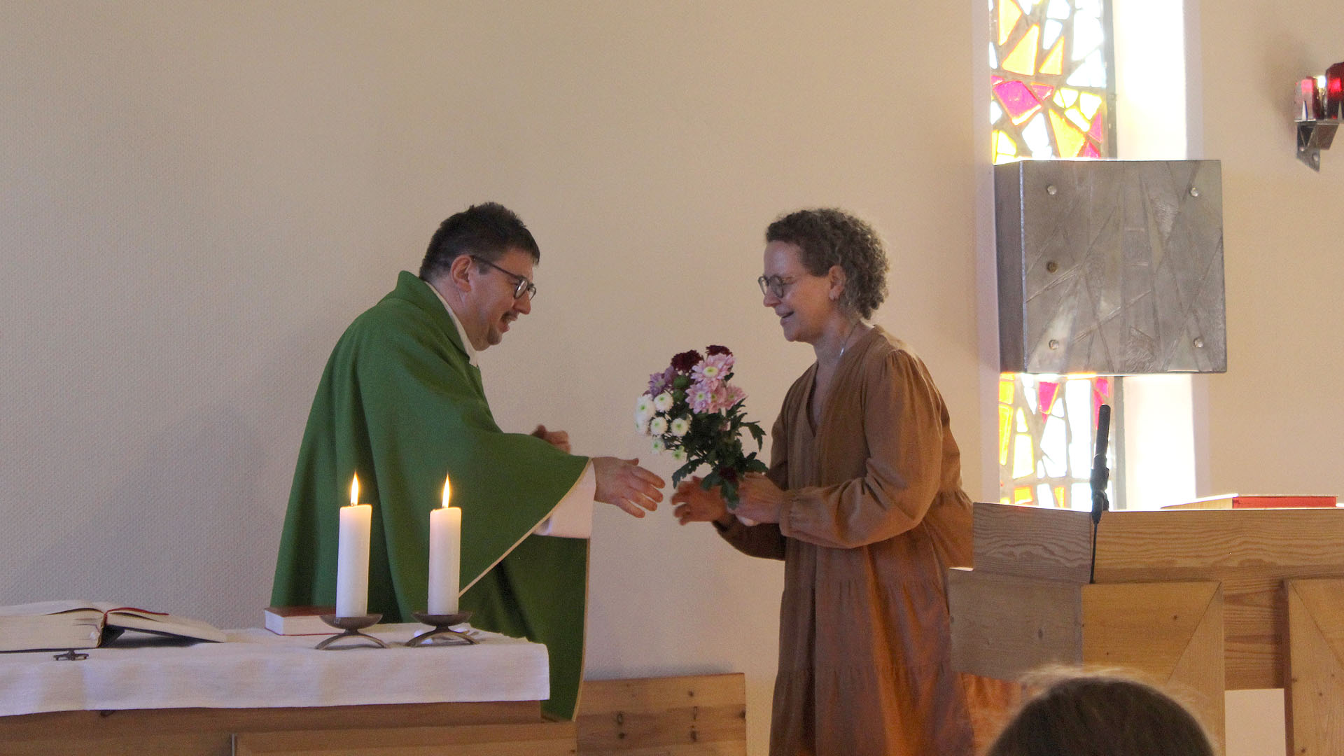 Borna (16./30.10.2022). Nach über fünf Jahren wirken als Kaplan in den katholischen Ortsgemeinden Borna und Geithain der Pfarrei Hl. Edith Stein, feierte Thomas Wiesner am Sonntag, dem 23. Oktober 2022, seinen letzten Gottesdienst. Er wechselt zum 1. November in die Pfarrei St. Paulus nach Greiz. Der ostthüringische Teil des Bistums Dresden-Meißen ist dem gebürtigen Wilsdruffer (52) nicht ganz unbekannt, war er doch bereits vor seiner Zeit in Borna/ Geithain als Diakon in der Pfarrei St. Elisabeth in Gera tätig. Seinen, wenn auch etwas kurzen, Lebensabschnitt im Leipziger Land vergleicht er zum Abschied mit einem Getreidekorn, das ausgesät und über die vergangenen Jahre gepflegt wurde. „Als noch nicht ganz erntereife Ähre“, so hofft er, „konnte ich vielleicht schon hier und da ein paar reife, neue Körner abgeben“. Mit Kaplan Wiesner verließen auch Benediktinerpater Ansgar Orgaß und Gemeindereferentin Sabine Bley das Pfarreiteam. Beide waren in der Ortsgemeinde Wechselburg tätig.