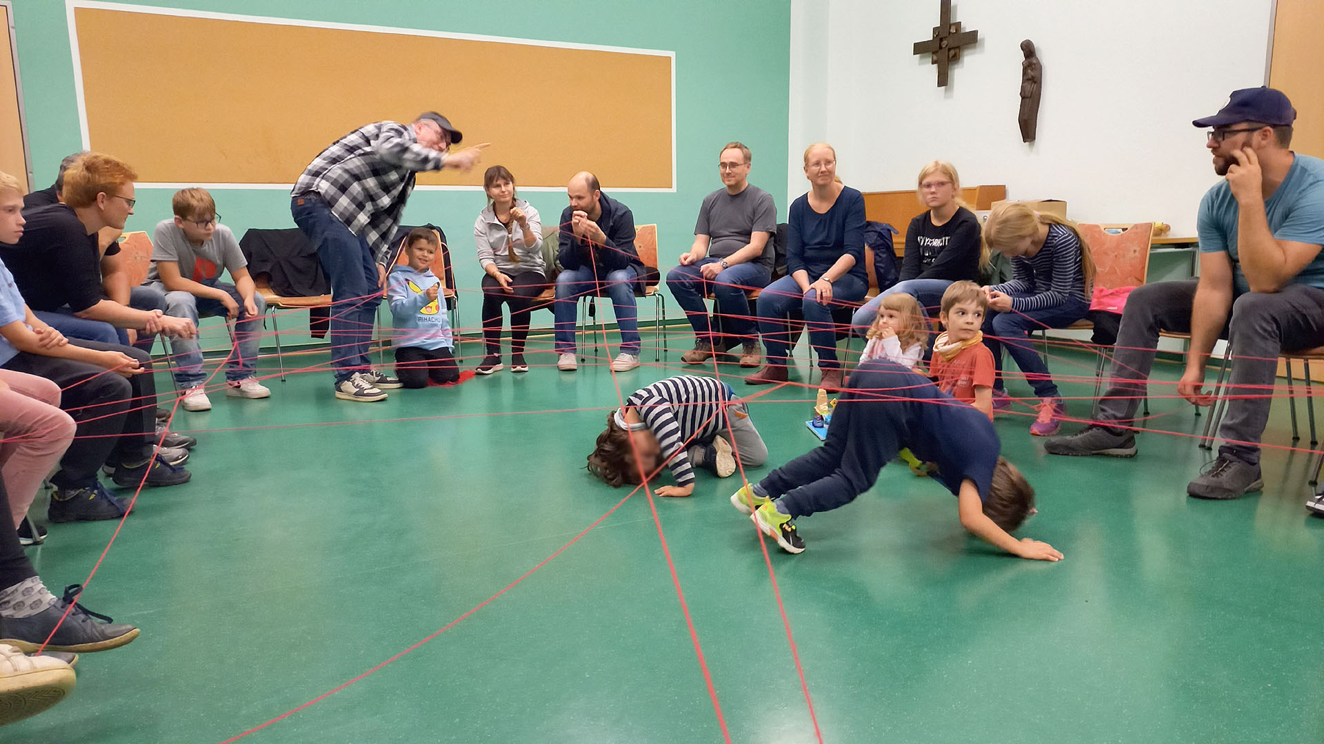 Borna/Naundorf (04.10.2024). 30 kleine und große Teilnehmende zählte das Familienwochenende vom 27. bis 29. September 2024 in der Caritas-Familienferienstätte St. Ursula in Naundorf, mitten in der Sächsischen Schweiz. Im Mittelpunkt dieser gemeinsamen Tage standen das gegenseitige Kennenlernen, das Erleben von Gemeinschaft sowie das untereinander Austauschen und Vernetzen. Los ging’s nach dem Abendessen mit einer lockeren Kennenlernrunde.