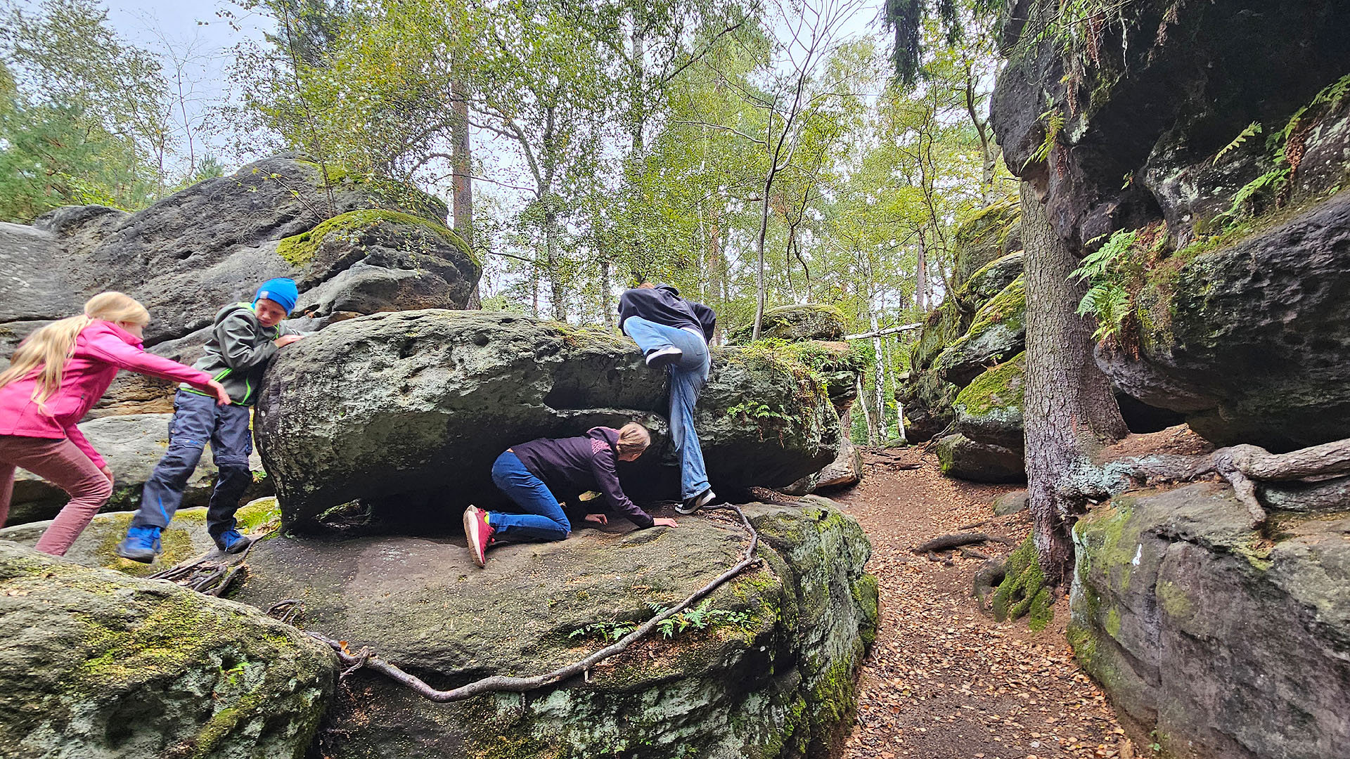 Die weiteren Höhepunkte waren am Samstagvormittag der Besuch des Felsenlabyrinthes in Langenhennersdorf. Das Natur-Entdecken des Elbsandsteingebirges einerseits und das Austesten der eigenen Grenzen beim Klettern andererseits machte vor allem den Kindern viel Freude. Den Nachmittag verbrachten die Familien im Miniaturpark „Die Kleine Sächsische Schweiz“ in Wehlen. Vor Ort gab’s viele Sehenswürdigkeiten rund um die Sächsische Schweiz zu entdecken. Zurück im Quartier fand mit einbrechender Dunkelheit noch ein gemeinsamer Spieleabend für Jung & Alt statt. Es war spannend mitzuerleben, wie viele verschiedene Spiele den Teilnehmenden bekannt sind. Mit dem Besuch des Sonntagsgottesdienstes in der katholischen Kirche im benachbarten Bad Schandau neigte sich ein gelungenes Wochenende dem Ende entgegen. Nach einem letzten gemeinsamen Mittagessen standen der Abschied und die Heimreise an.