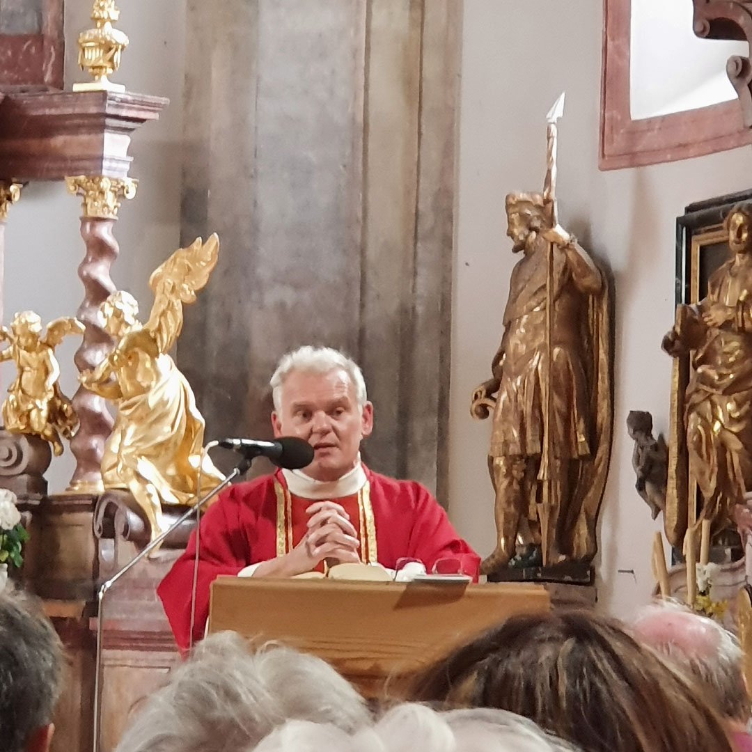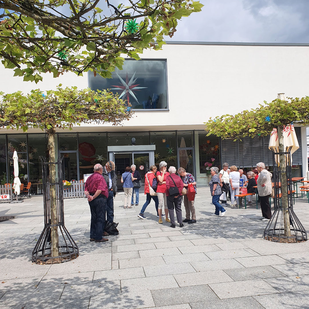 Etwa vier Wochen später waren Senioren der Bornaer Gemeinde eingeladen, mit der Gemeinde Glauchau am Donnerstag, dem 5. Juni, an einem gemeinsamen Tagesausflug nach Leutersdorf teilzunehmen. Die Gemeinde Leutersdorf liegt eingebettet im Dreiländereck von Polen, Tschechien und Deutschland, inmitten des schönen Oberlausitzer Berglands im Landkreis Görlitz in Sachsen. Die Busfahrt startete bereits gegen 7:30 Uhr an der katholischen Kirche in Glauchau. Ein erster planmäßiger Halt für die etwa 45-köpfige Reisegruppe war die Schauwerkstatt in Herrnhut, dem Entstehungsort der berühmten Sterne der Herrnhuter Brüdergemeinde. Auf ihrer Weiterfahrt zum Mittagessen ins nordtschechische Varnsdorf (Warnsdorf) gesellte sich Pfarrer Waldemar Styra hinzu. Er war Pfarrer in Borna (ab 2002) und Glauchau (ab 2011) gewesen, bevor er 2021 nach Leutersdorf wechselte.