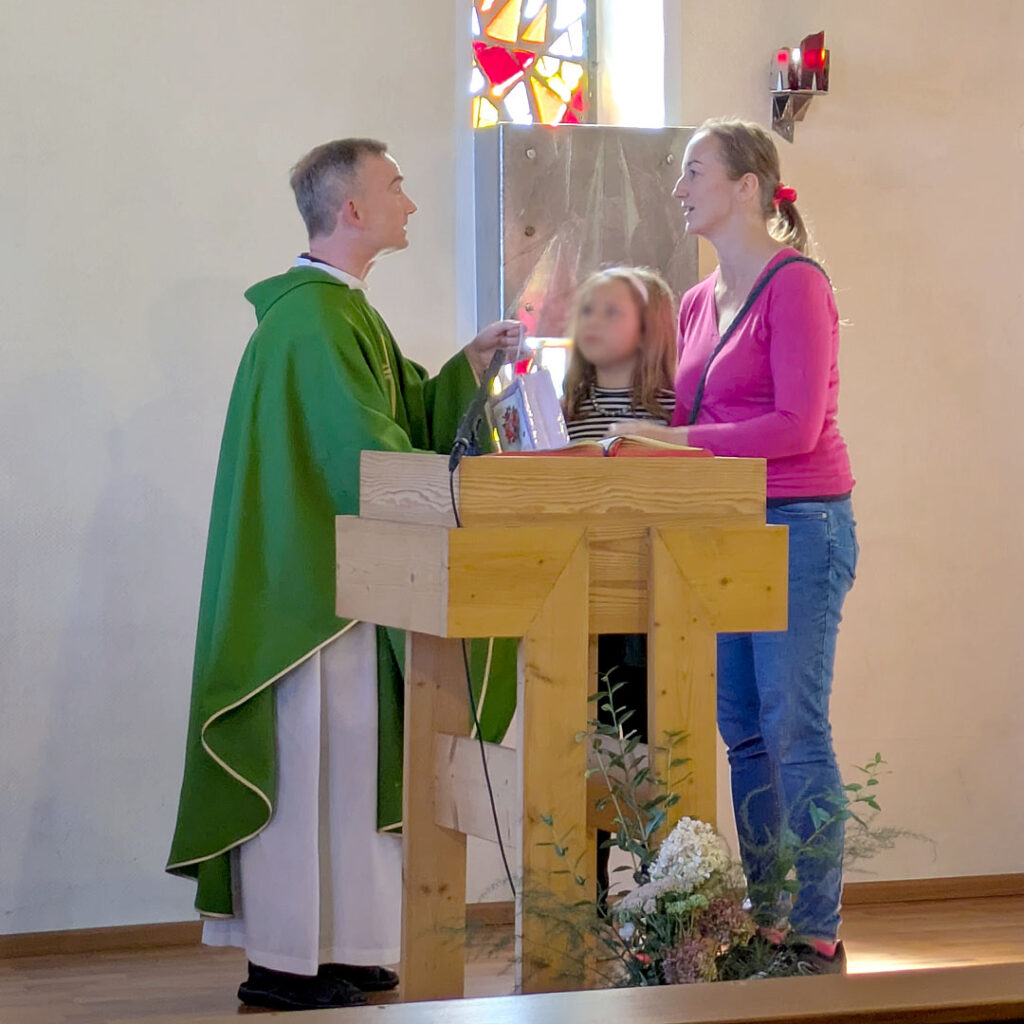 Borna (08.09.2025). Im Rahmen eines Sonntagsgottesdienstes am 7. September 2025 hat die Gemeinde St. Joseph den Abschied von Pfarrer Dietrich Oettler in Borna nachgeholt. „Wir wollen uns herzlich bedanken für Ihren Dienst in der Gemeinde“, so Ortskirchenrätin Weronika Weber. Sie überreichte ihm, im Namen der Gemeindemitglieder, als kleines Geschenk „[…] ein Bild vom Hl. Joseph, dem Pfarrpatron der Kirche, damit er Sie begleitet, sowie auch eine Kerze, damit sie Ihren weiteren Weg erhellt“. Pfarrer Oettler bedankte sich herzlich an die Gemeinde gerichtet: „Vergelt’s Gott. Gottes Segen für ihre Wege, persönlich und als Gemeinde.“