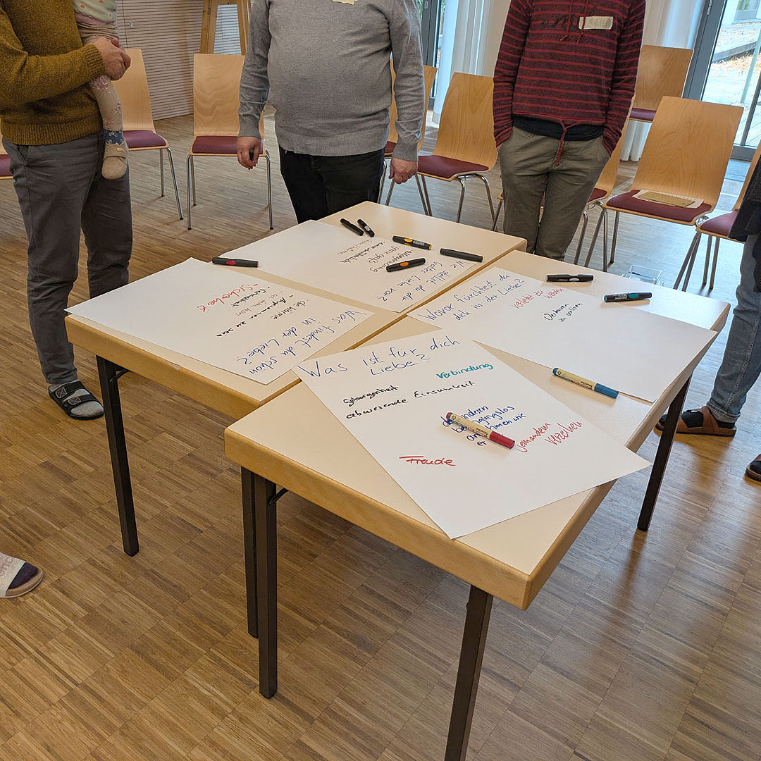 Der Liebe Gottes zu uns Menschen nachspüren, damit beschäftigte sich die thematische Einheit am Samstagvormittag. Während die Mädchen und Jungen in der Kreativwerkstatt sich bunt ausmalten und gestalteten, wie sie sich Gottes Liebe vorstellten, suchten die Erwachsenen in einem Schreibgespräch ihre Antworten auf die Fragen: Was ist für dich Liebe? Was findest du schön in der Liebe? Wovor fürchtest du dich in der Liebe? Wie stellst du dir Gottes Liebe vor?