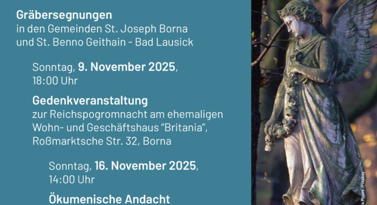 Borna/Geithain (25.10.2025). Das Ende des aktuellen Kirchenjahres läuten die Feiertage zu Allerheiligen (Samstag, 1. November 2025) und Allerseelen (Sonntag, 2. November) ein. In dieser Zeit wird besonders der Verstorbenen gedacht, sodass alle Interessierten zu den Gräbersegnungen in den jeweiligen Städten und Gemeinden eingeladen sind.