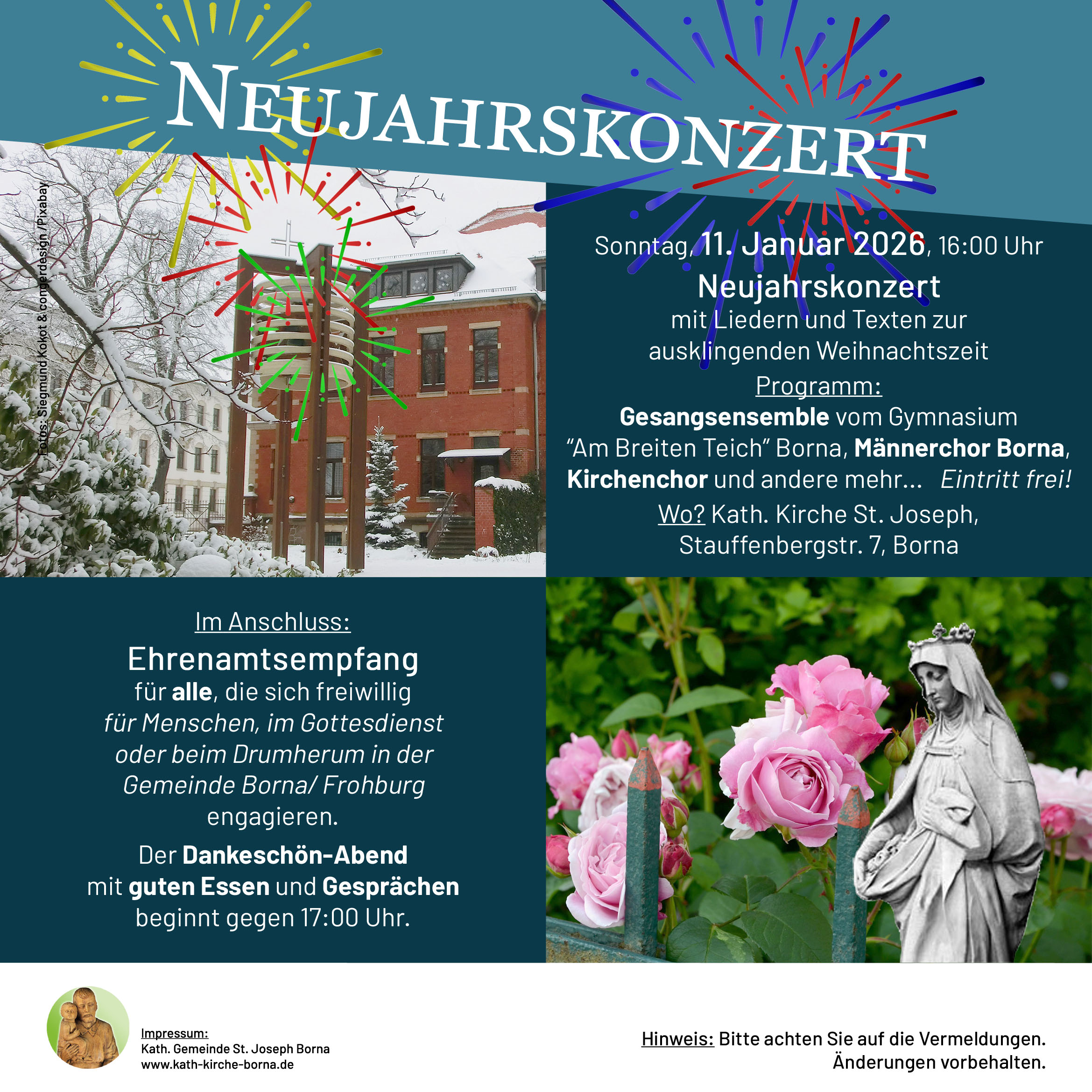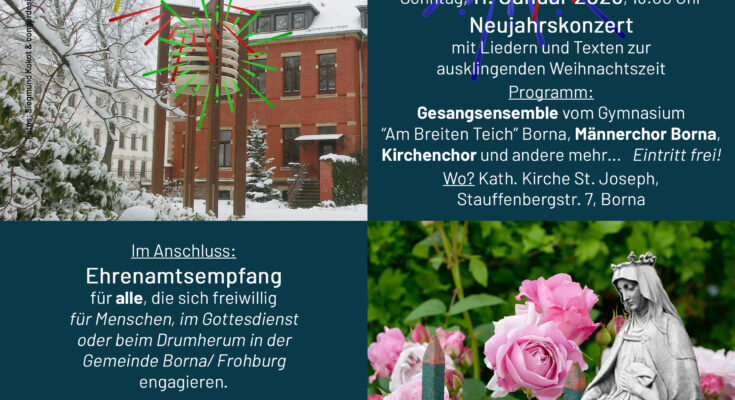 Neujahrskonzert mit Liedern und Texten zur ausklingenden Weihnachtszeit am Sonntag, dem 11. Januar 2026, um 16:00 Uhr in der katholischen Kirche St. Joseph in Borna.