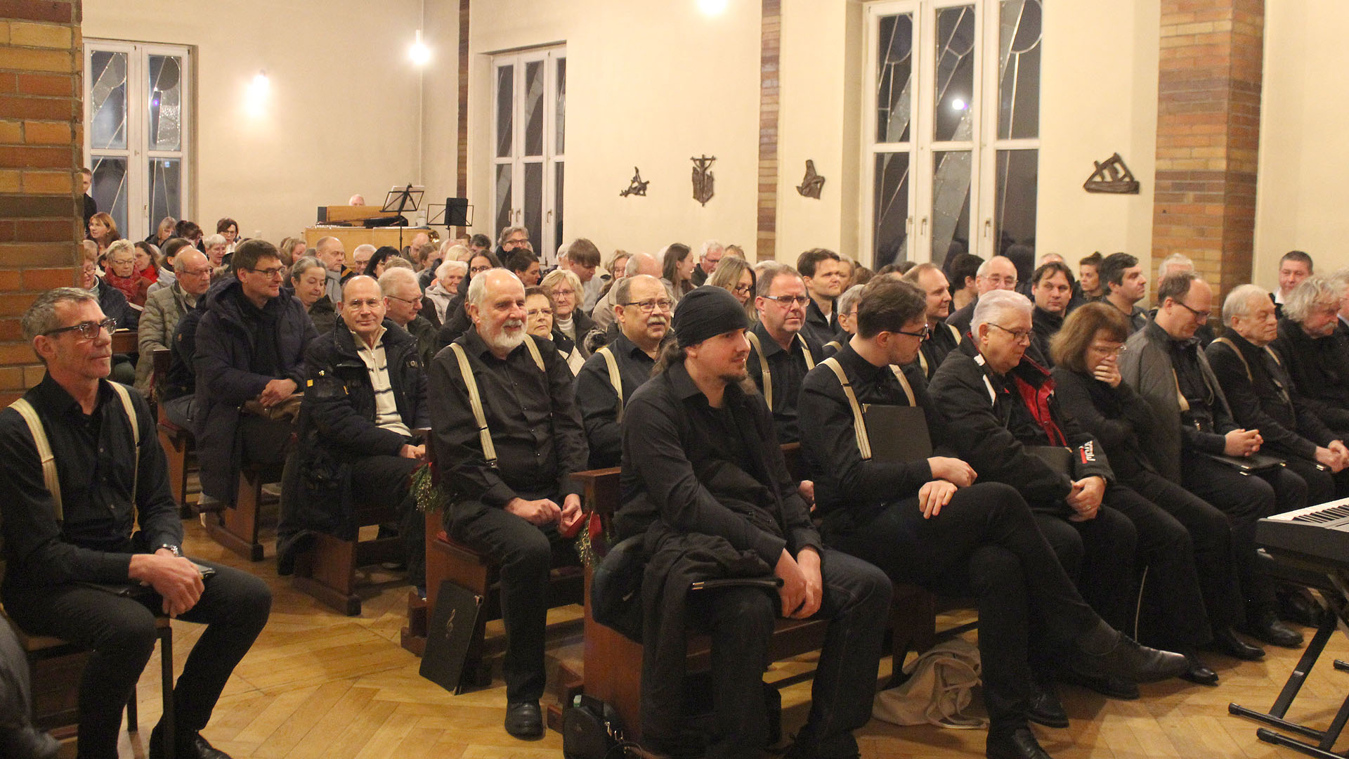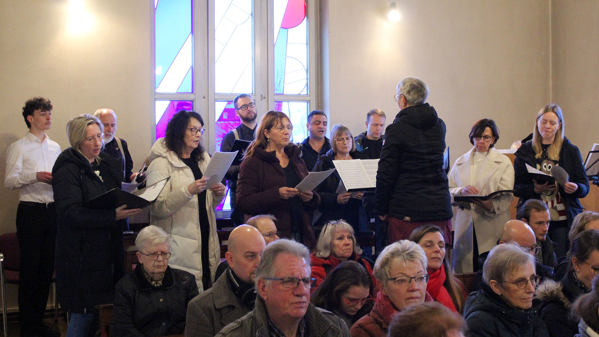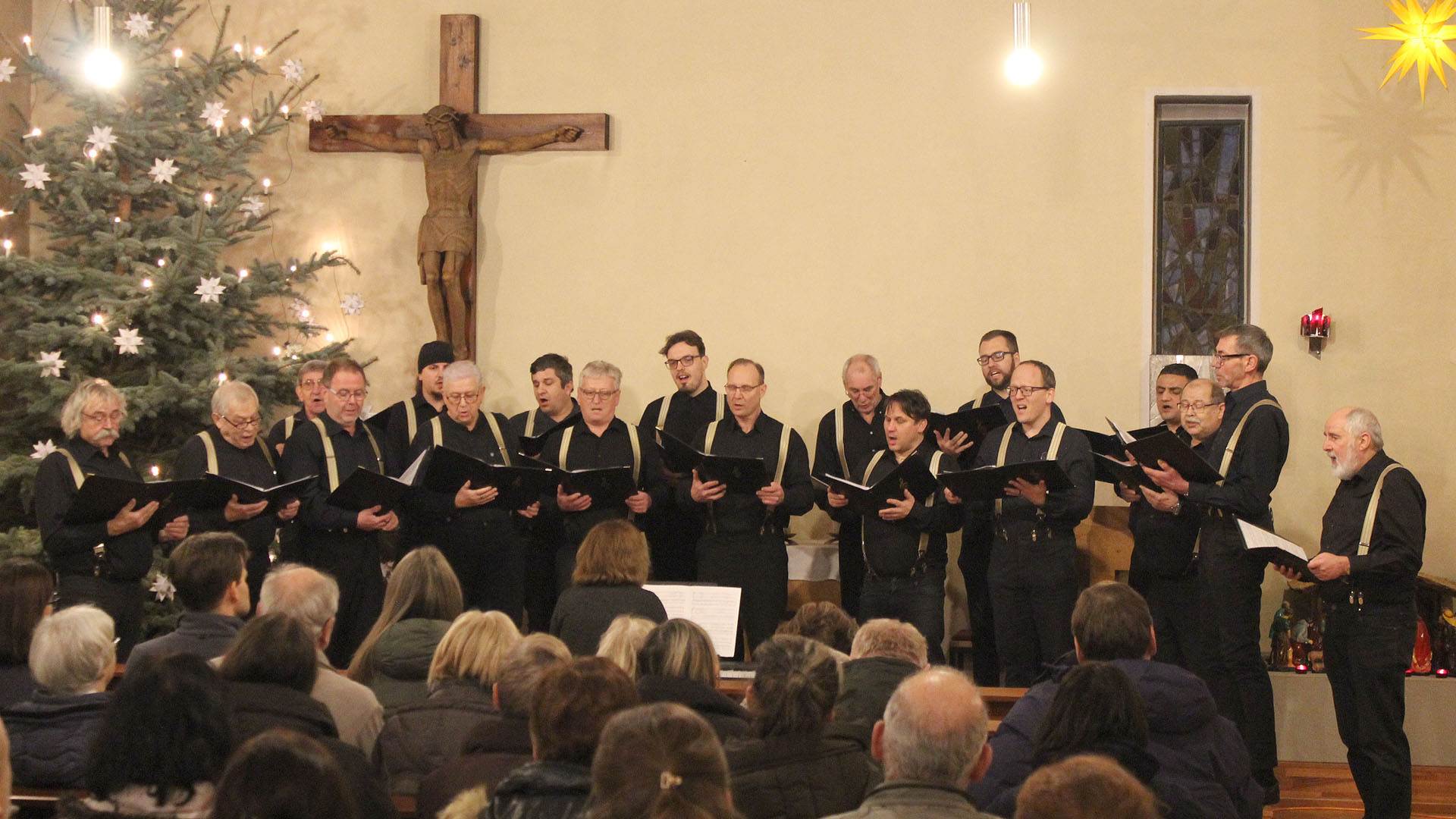 Seit dem ersten Konzert im Januar 2003 ist es gute Sitte, dass der gemeindeeigene Kirchenchor das weihnachtliche Programm eröffnet. Diesen Auftakt absolvierte er, unter Leitung von Elisabeth Kreißig, erwartungsgemäß fehlerfrei – wenn auch die Anmoderation auf eine bunte Zusammensetzung durch Sänger aus verschiedenen Chören hinwies. Ebenso konnte im Anschluss, nach mehrjähriger Pause, erfreulicherweise wieder ein Beitrag von Familienmusik aus der Gemeinde angekündigt werden.